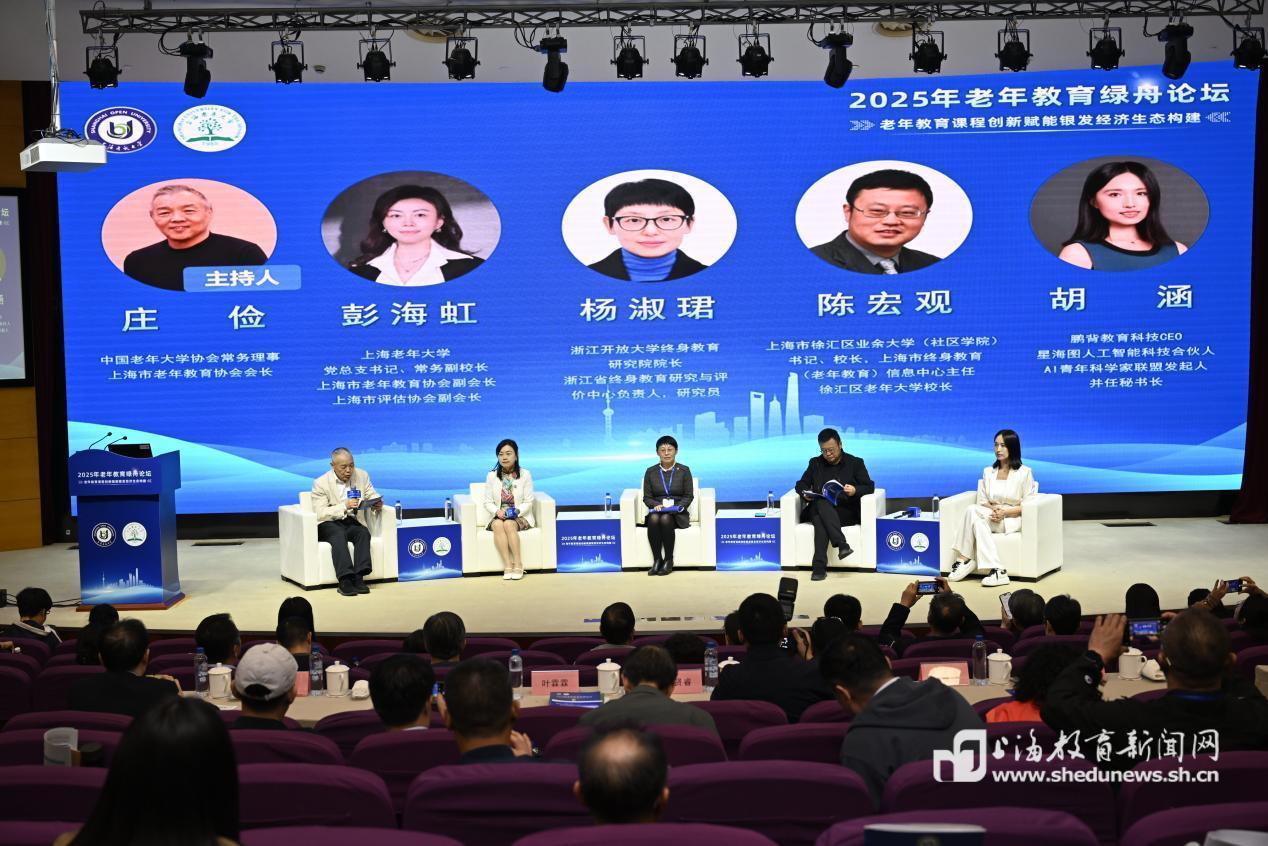 在嘉宾访谈环节,围绕老年教育课程创新赋能银发经济生态构建的主题,上海老年大学党总支书记、常务副校长彭海虹,浙江开放大学终身教育研究院院长杨淑珺,上海市徐汇区业余大学(社区学院)党总支书记、校长陈宏观,鹏背教育科技CEO、星海图人工智能科技合伙人胡涵分别从理念创新、区域实践、技术赋能等不同维度,就老年教育课程创新、“教育+产业”协同发展新模式、科技企业的数字赋能动态等方面作了特色发言和互动交流。