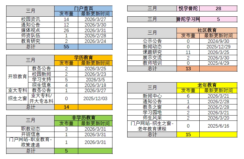 3月校园网络平台信息发布数据统计一览