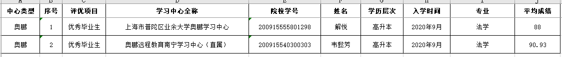 2025年秋季优秀毕业生评选工作经过各学习中心初审、推荐,学院根据奖项的评选条件进行了严格审核,现将学院初评结果进行公示。公示时间为2025年9月26日至10月10日。 公示期后,学院将为获奖学生寄发荣誉证书。