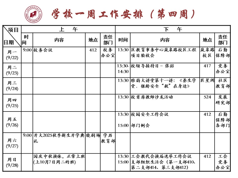 2025年第二学期第四周工作安排