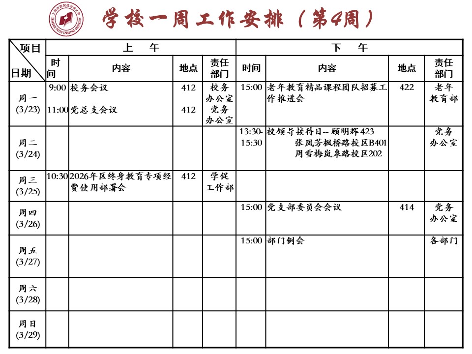 2026年第一学期第四周工作安排