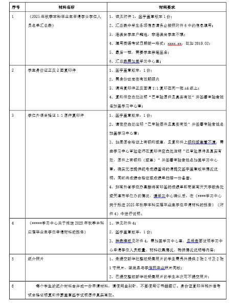 8、由于毕业生体量过大,时间紧张,学生申报材料内容务必认真核对信息后填写,信息填写有误的材料,将要求重新提交,如因此耽误学生申报学位毕业证延期,后果自负,请各学习中心老师做好指导督促检查工作。