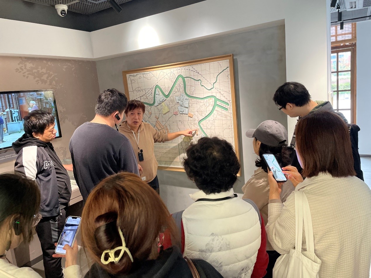 本次研学沿着普陀区苏州河岸线——半马苏河(全长约21公里,相当于半程马拉松长度),从顾正红纪念馆出发,途径中华书局澳门路印刷厂、宜昌路救火会、上海啤酒公司旧址、天安千树(阜丰福新面粉厂旧址)、M50创意园(信和纱厂旧址)、百合桥(新建成的人行桥)、长寿路桥、沪西工人半日学校史料陈列馆。整条路线串联起工业遗存与现代地标,让学员们在行走中感受苏州河从“工业动脉”到“文化客厅”的时代变迁。