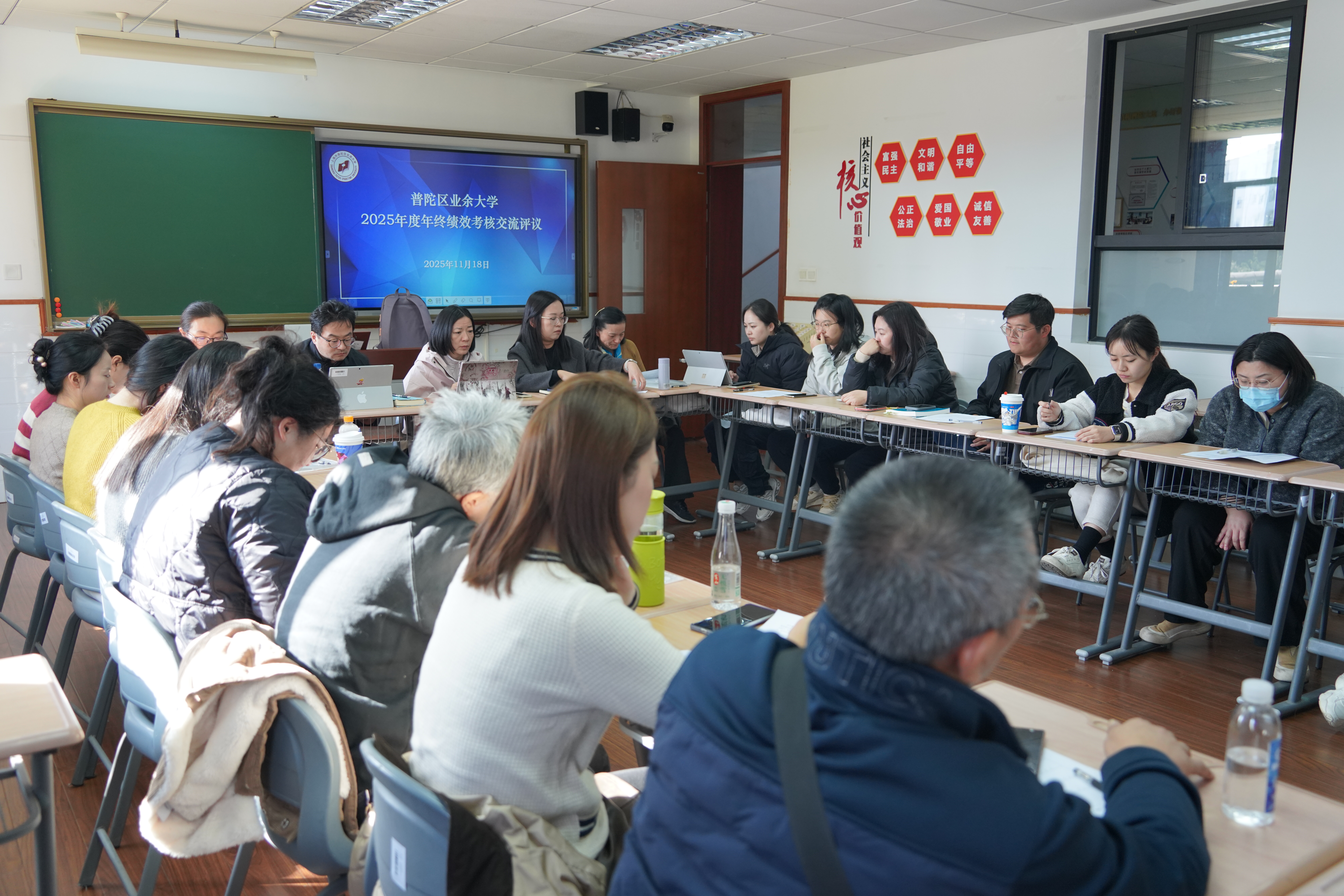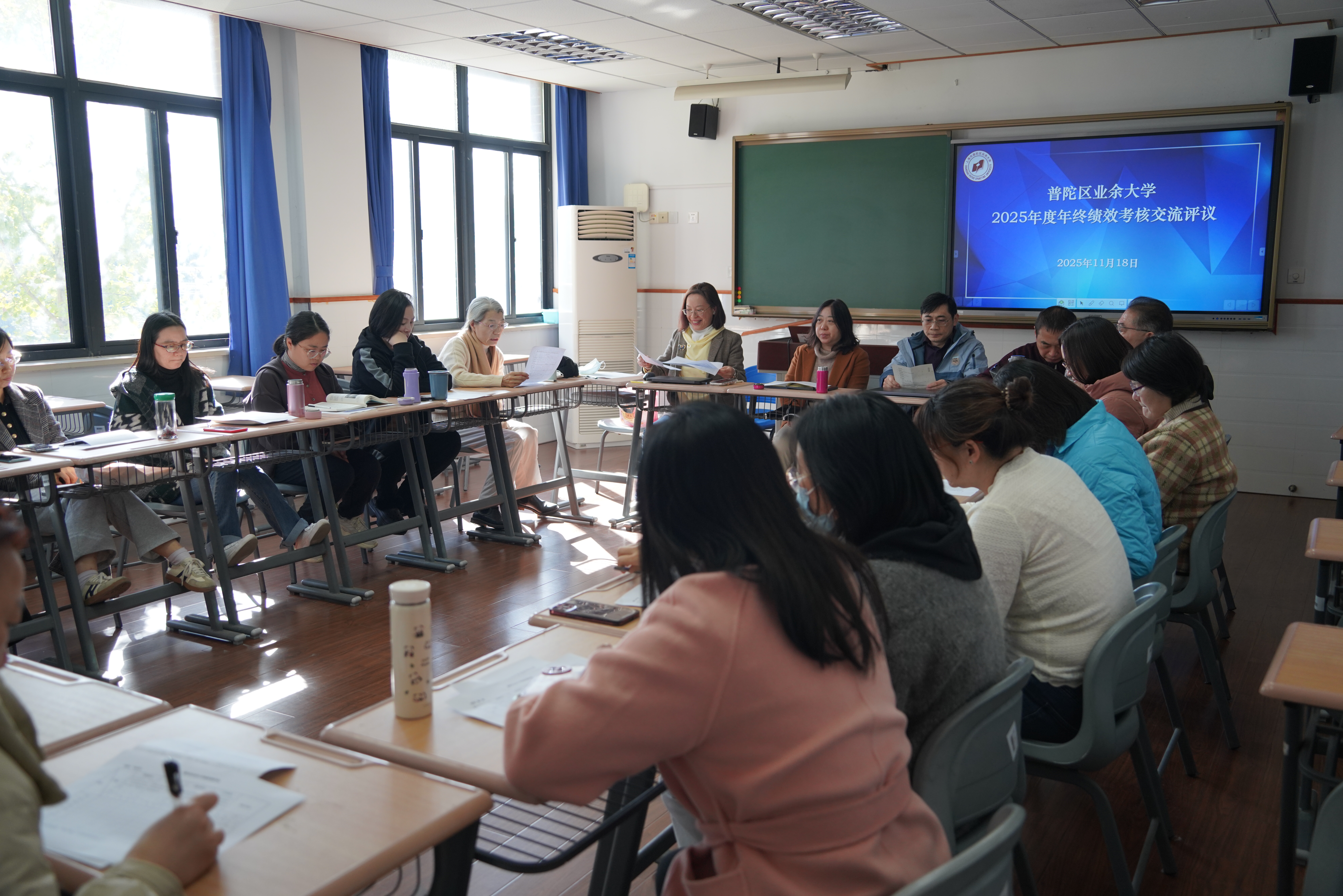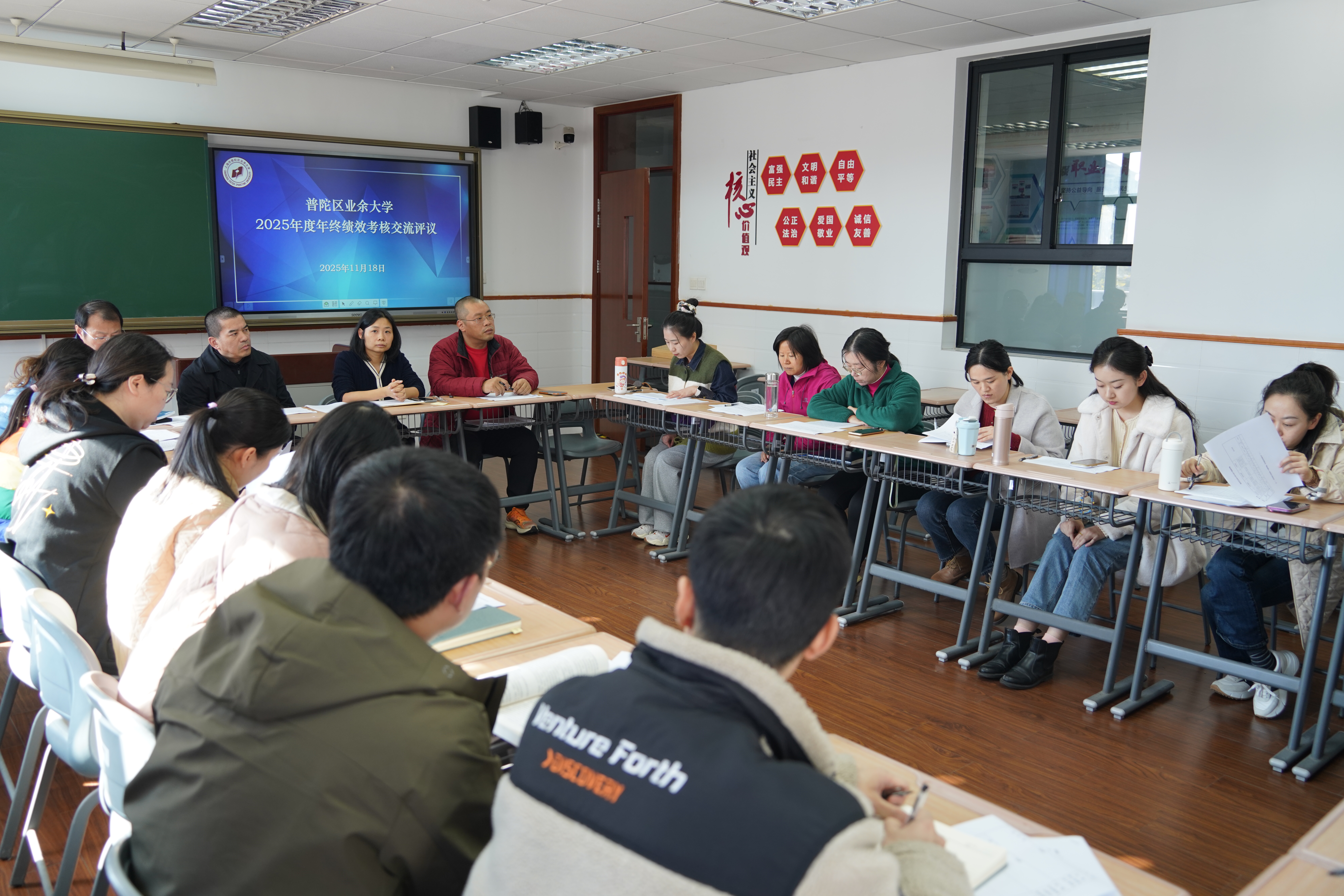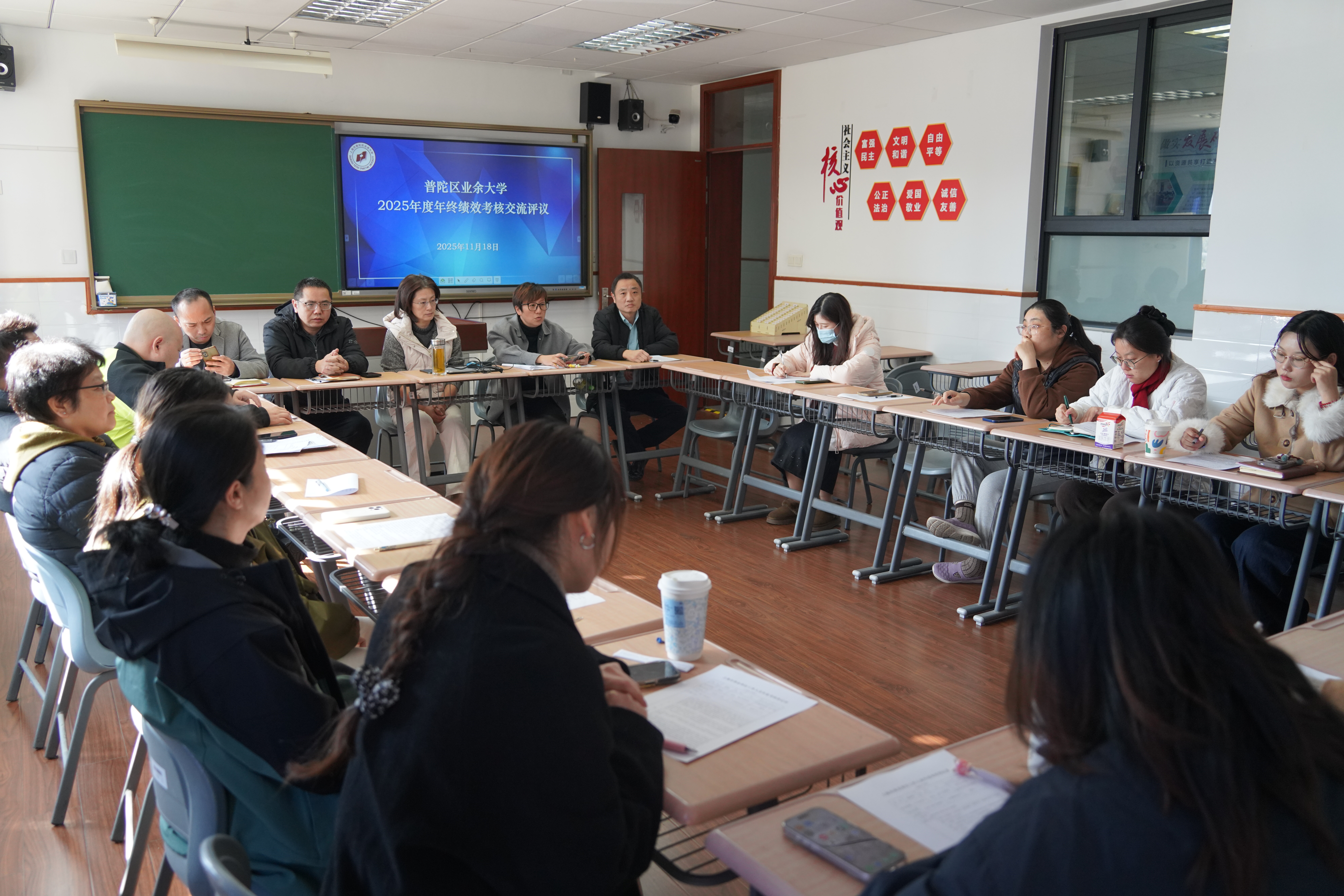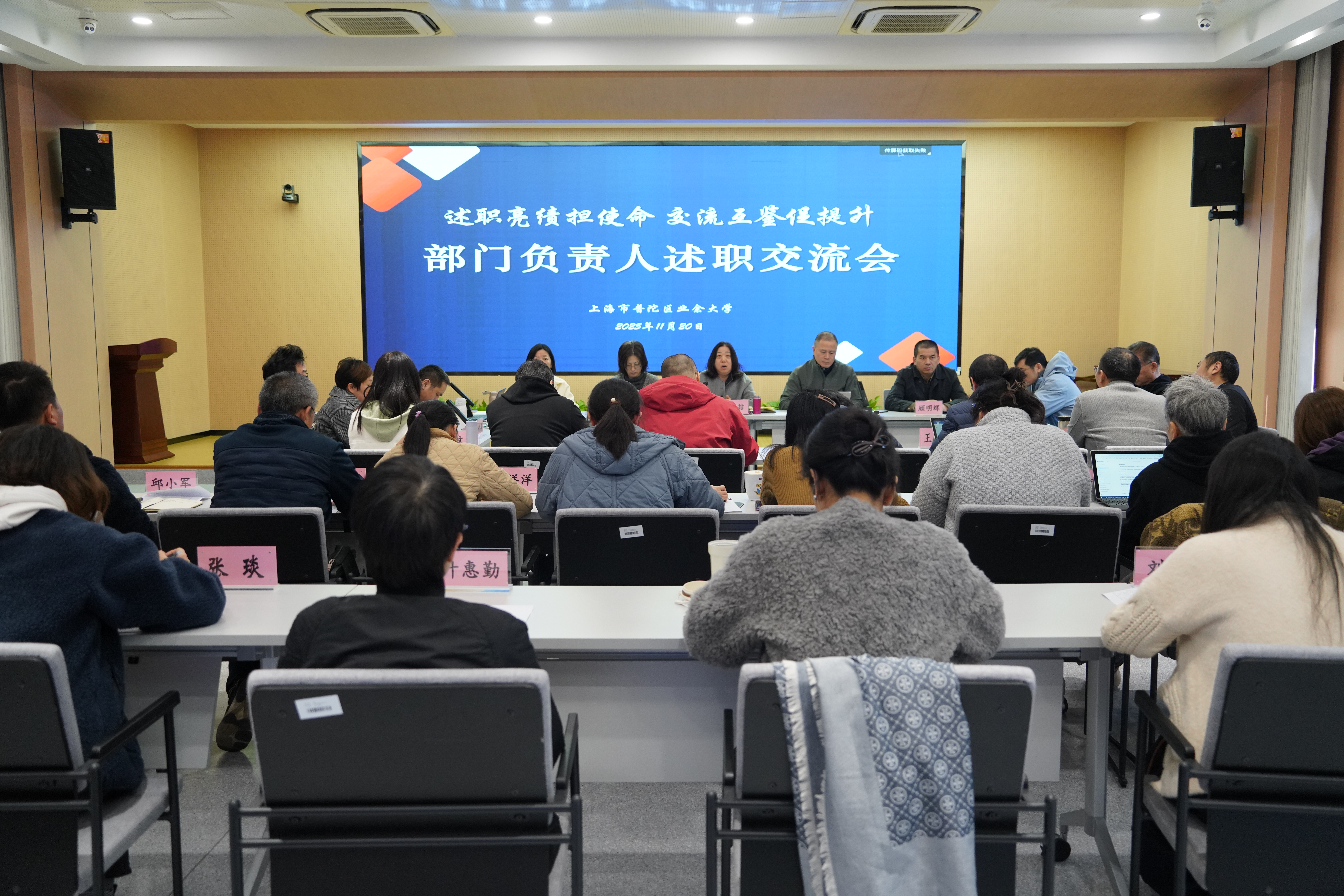 为全面总结2025年度工作成效、剖析问题短板、锚定来年发展方向,进一步凝聚全校合力,11月20日,普陀区业余大学在匠·星阁召开部门负责人述职交流会。学校全体领导班子成员、中层干部及部分教师代表参加会议,会议由校党总支副书记、校长徐文清主持。