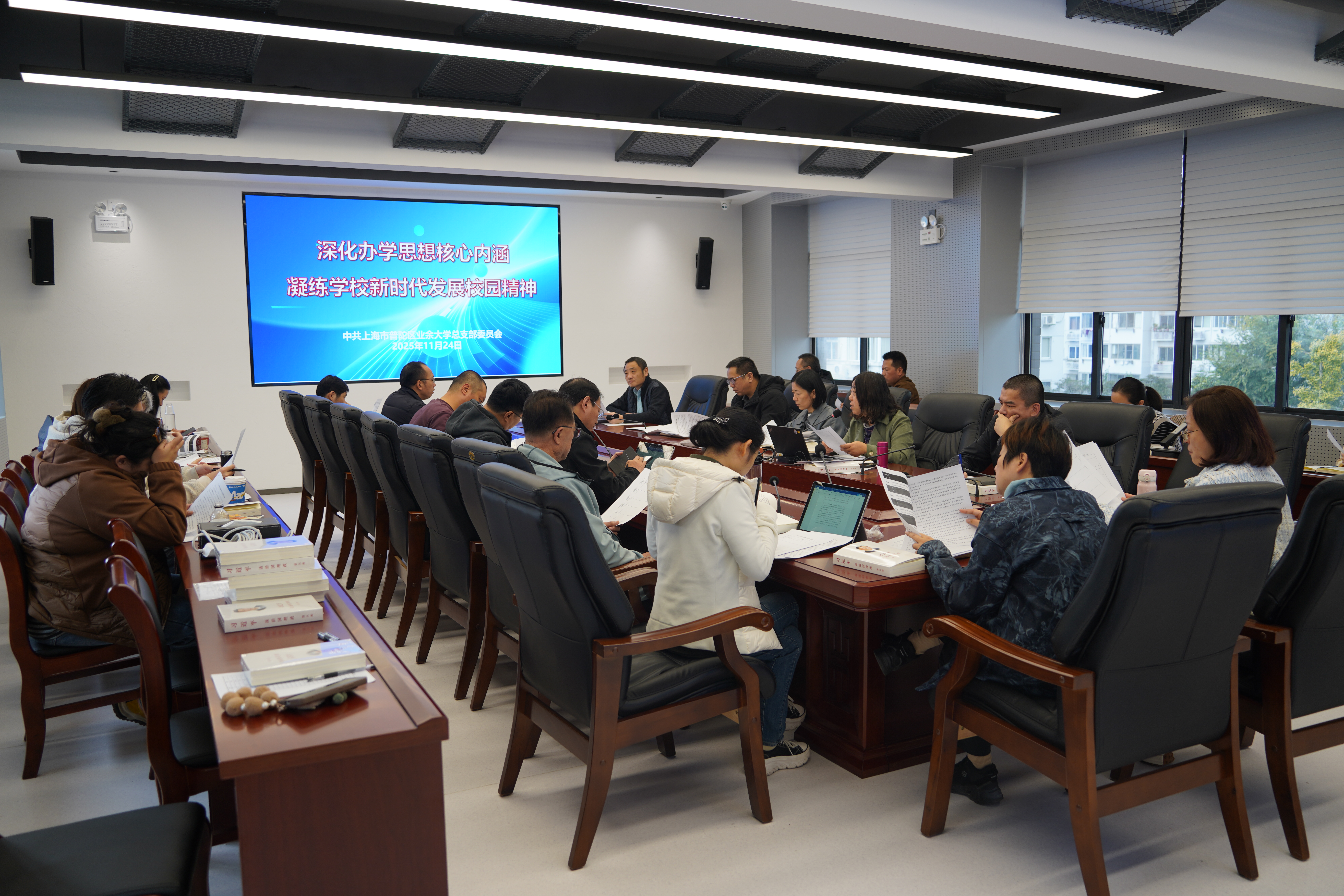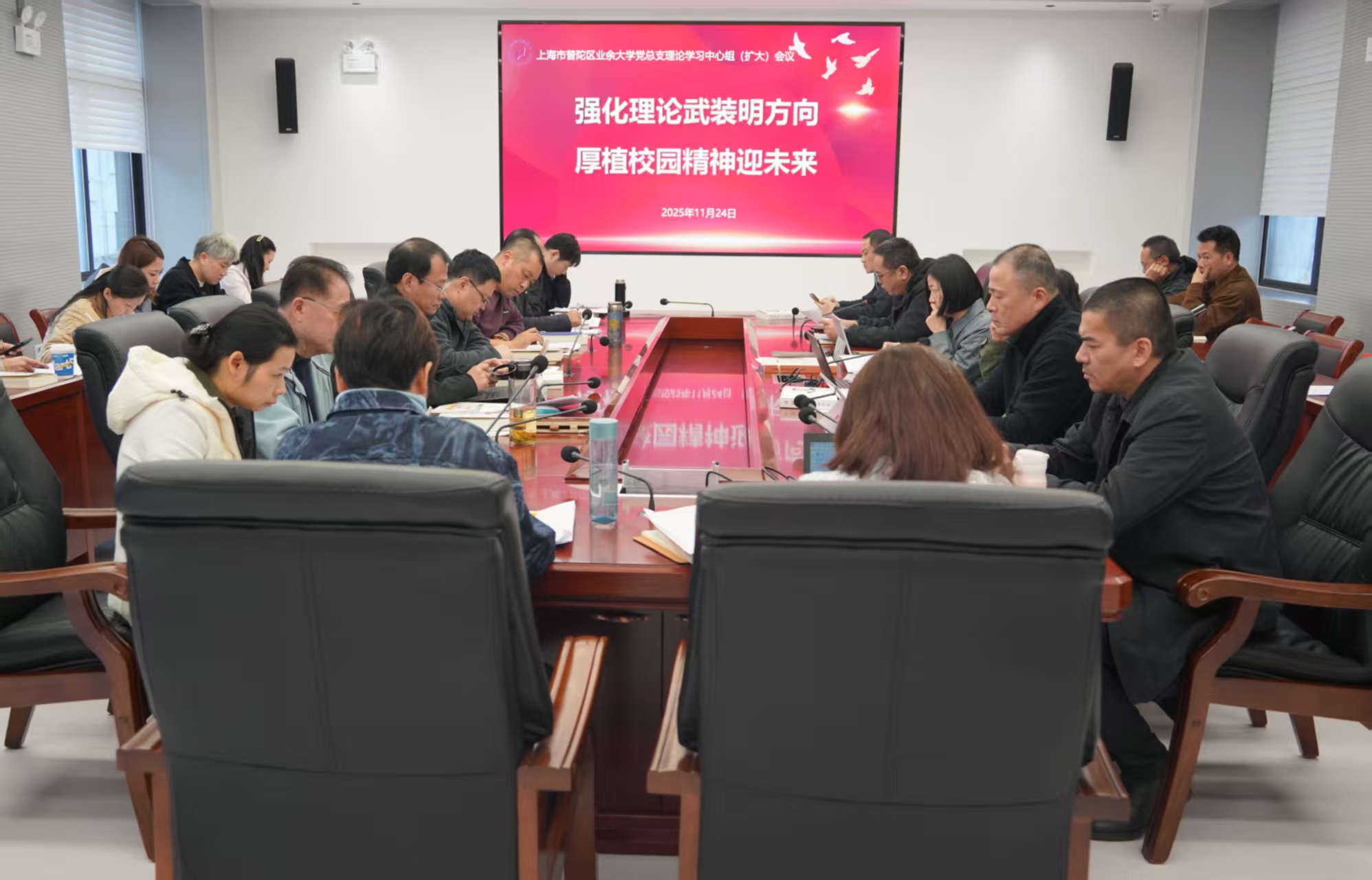 为深入学习贯彻党的二十届四中全会精神,切实把思想和行动统一到习近平总书记重要讲话精神和全会部署上来,科学谋划“十五五”时期学校高质量发展,近日,普陀区业余大学党总支以“强化理论武装明方向 厚植校园精神迎未来”为主题,召开理论学习中心组(扩大)会。党总支书记张喆主持会议并讲话。学校中层及以上干部参加会议。