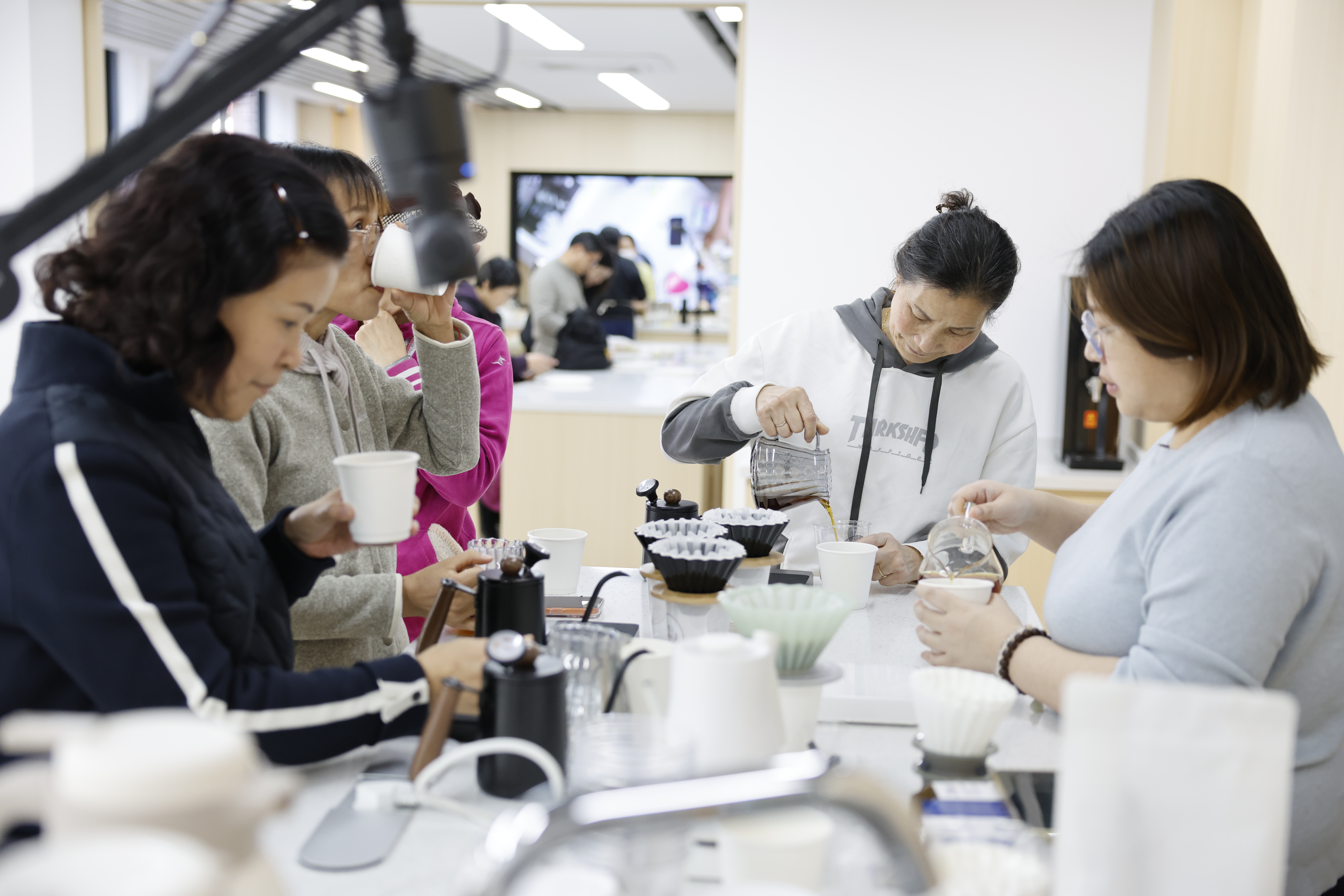 外场区域同样精彩纷呈。书画、摄影、手工类作品琳琅满目,充分展现了老年学员丰硕的学习成果。活动现场还设置了剪纸、香道、烘焙、咖啡冲泡等特色互动体验区域,吸引观众驻足欣赏、踊跃参与。