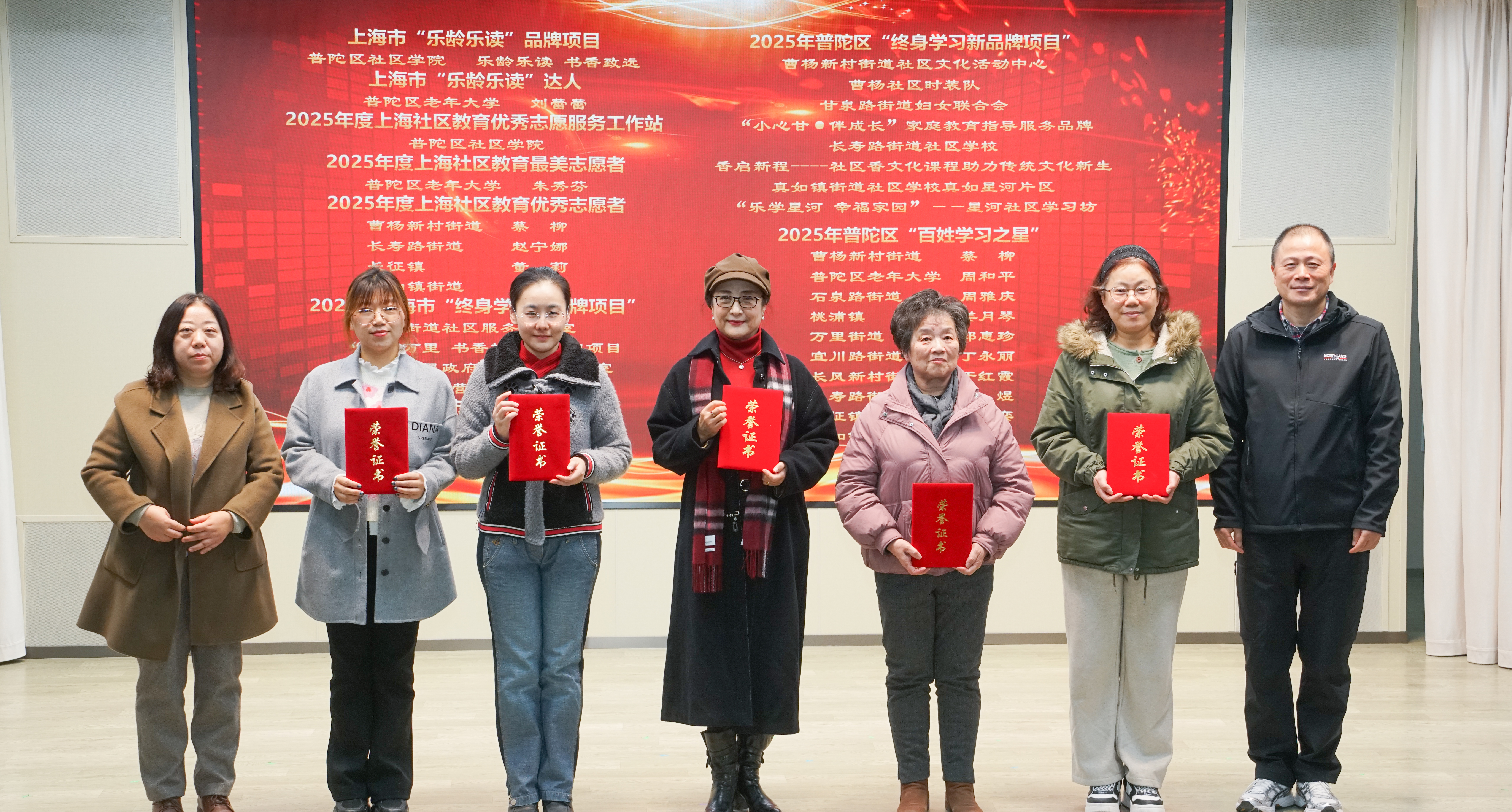 与会领导为2025年全民阅读、终身学习领域相关展演和评比活动的获奖代表颁发荣誉证书,以榜样力量激励广大终身教育工作者和市民朋友见贤思齐,践行乐学精神,进一步擦亮半马苏河“学习名片”,为普陀“书香城市”和教育强区建设贡献更多力量。