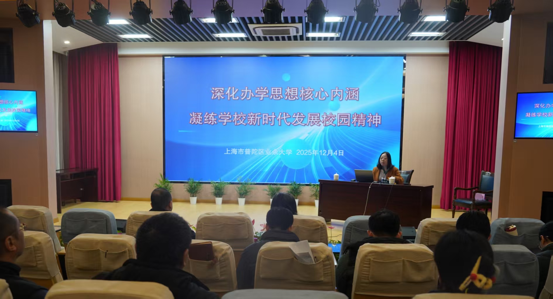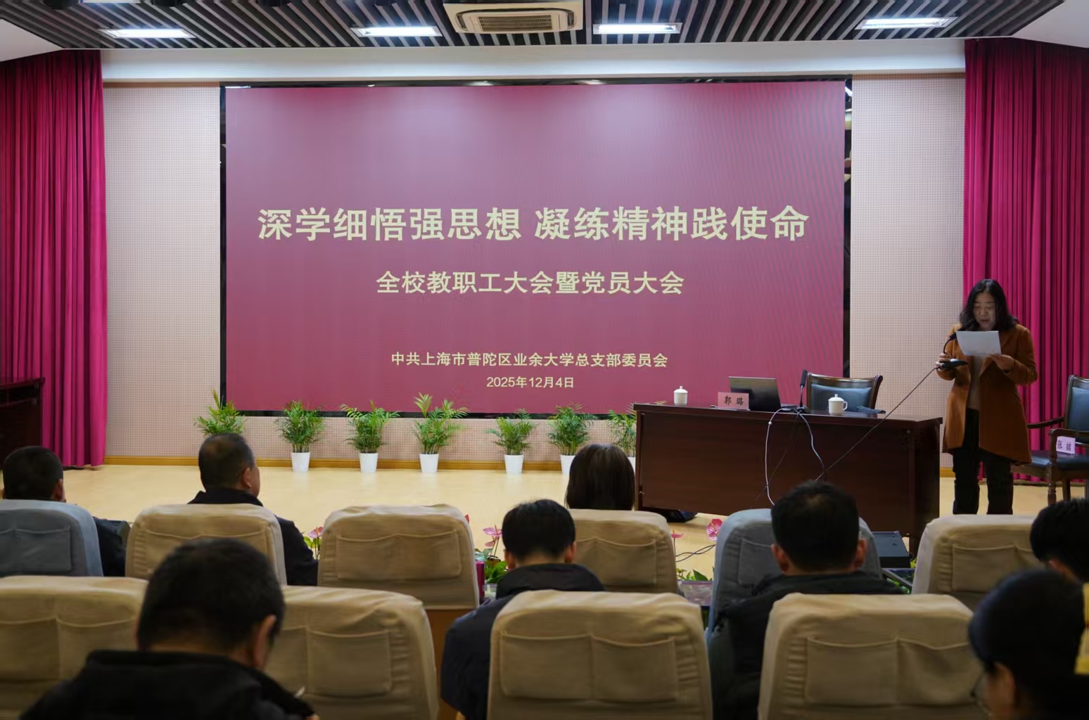 为深入贯彻落实党的二十届四中全会精神,进一步加强党员队伍建设,增进党组织政治功能和组织功能,12月4日下午,普陀区业余大学召开全校教职工大会暨党员大会,会议由党总支书记张喆主持。