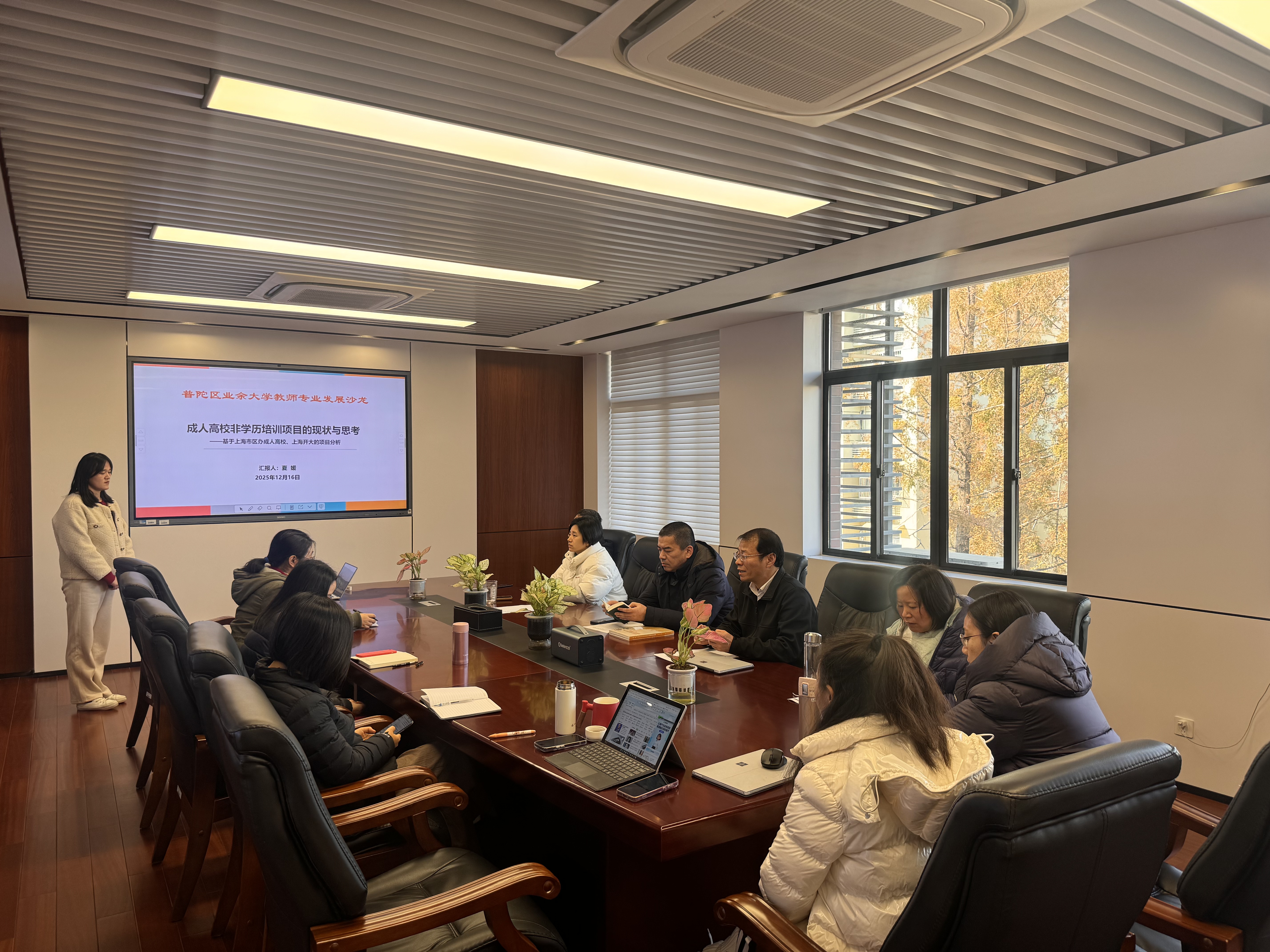 为总结成人高校非学历培训项目推进思路,探索未来非学历培训发展路径,12月16日,普陀区业余大学举行成人高校非学历培训项目的现状与思考研讨会。副校长顾明辉出席。