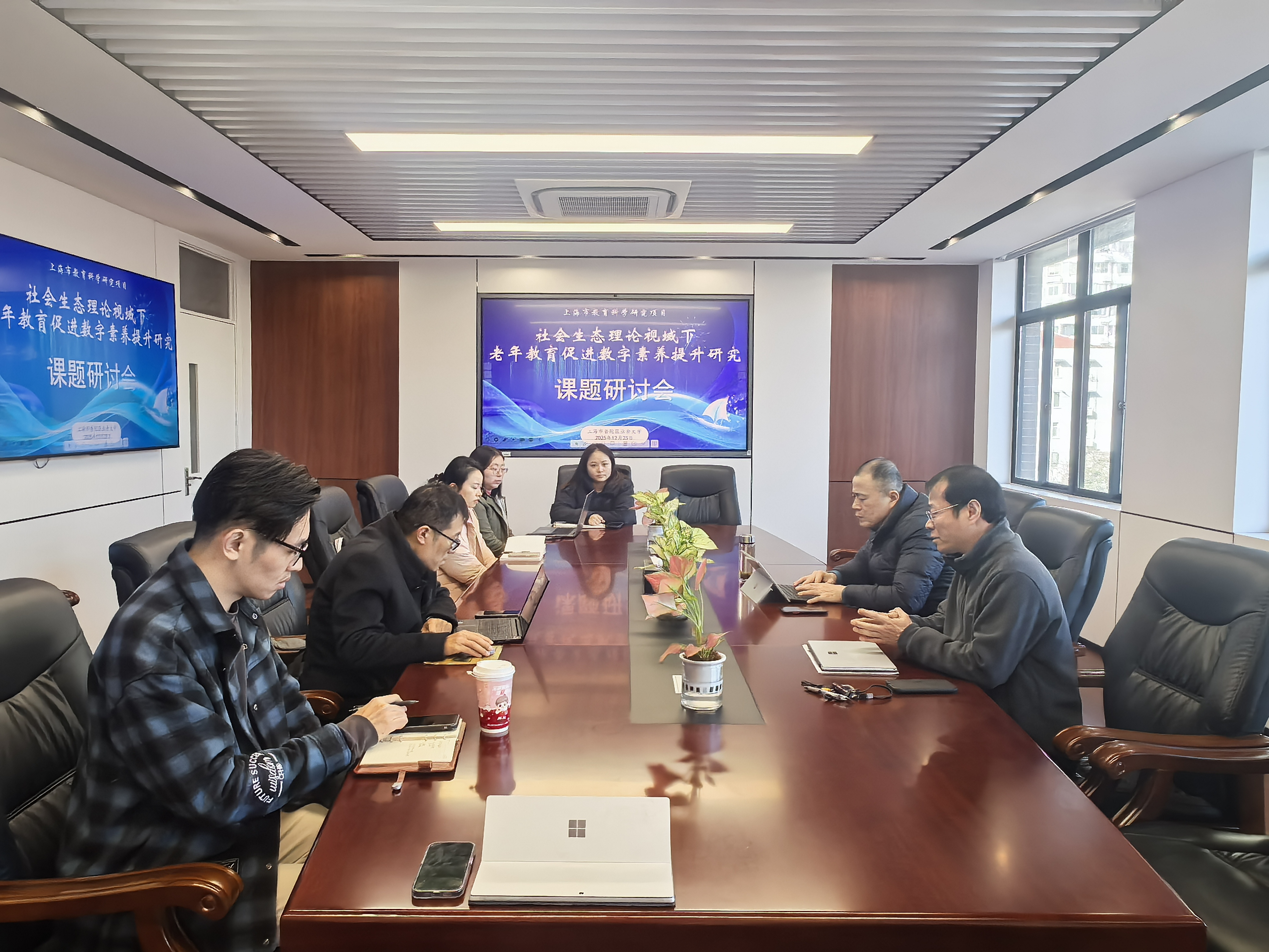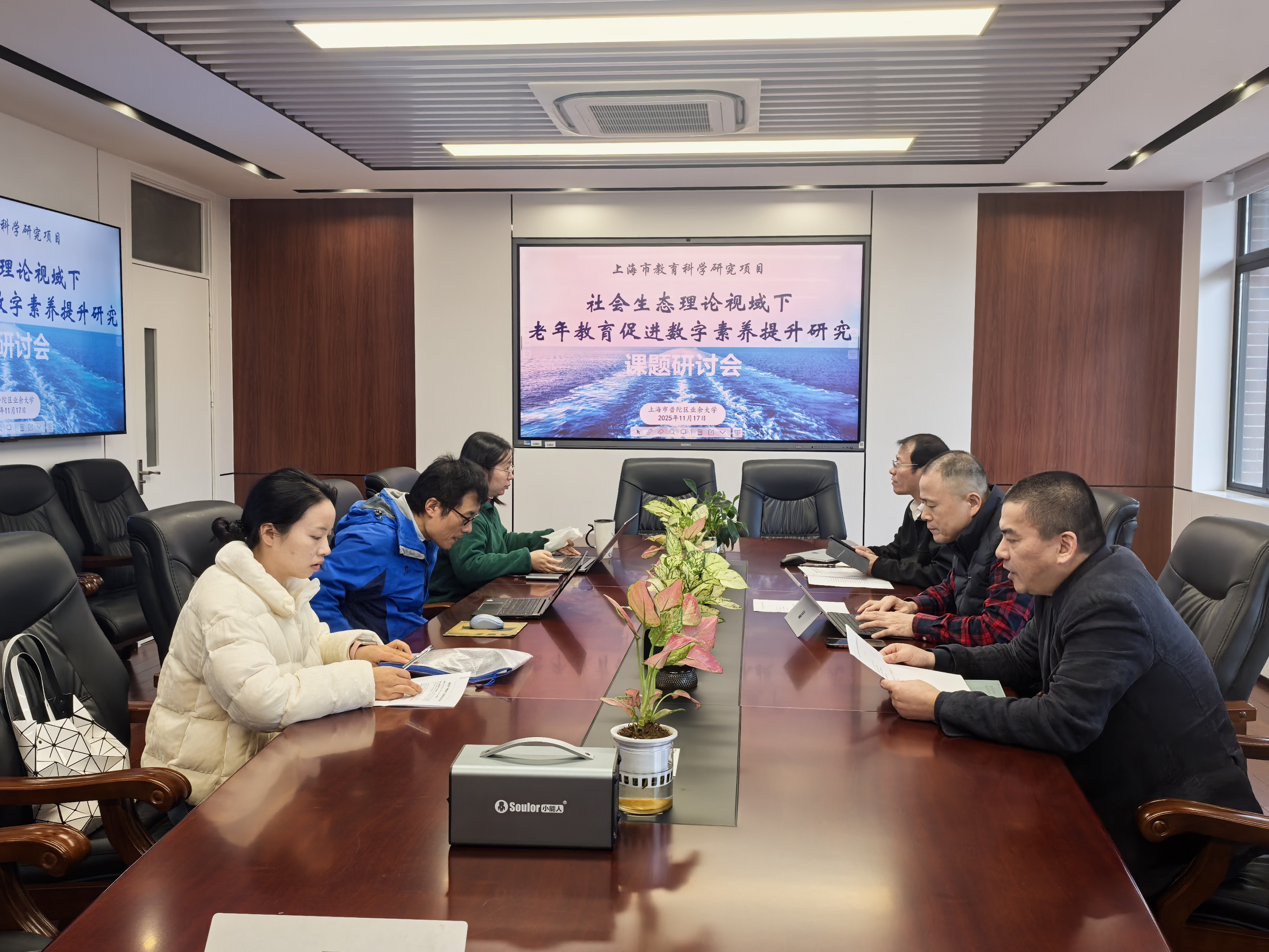 为了全面梳理课题研究思路与进展,更好地深化推进课题研究,2025年12月25日,学校组织开展了2025年度上海市教育科学规划项目《社会生态理论视域下老年教育促进数字素养提升研究》阶段研究总结会,围绕课题本年度研究进展、阶段性成果与后续推进计划展开深入交流与研讨,旨在凝聚共识、审视成效、优化路径、谋划未来。课题组组长,党总支副书记、校长徐文清出席总结会。