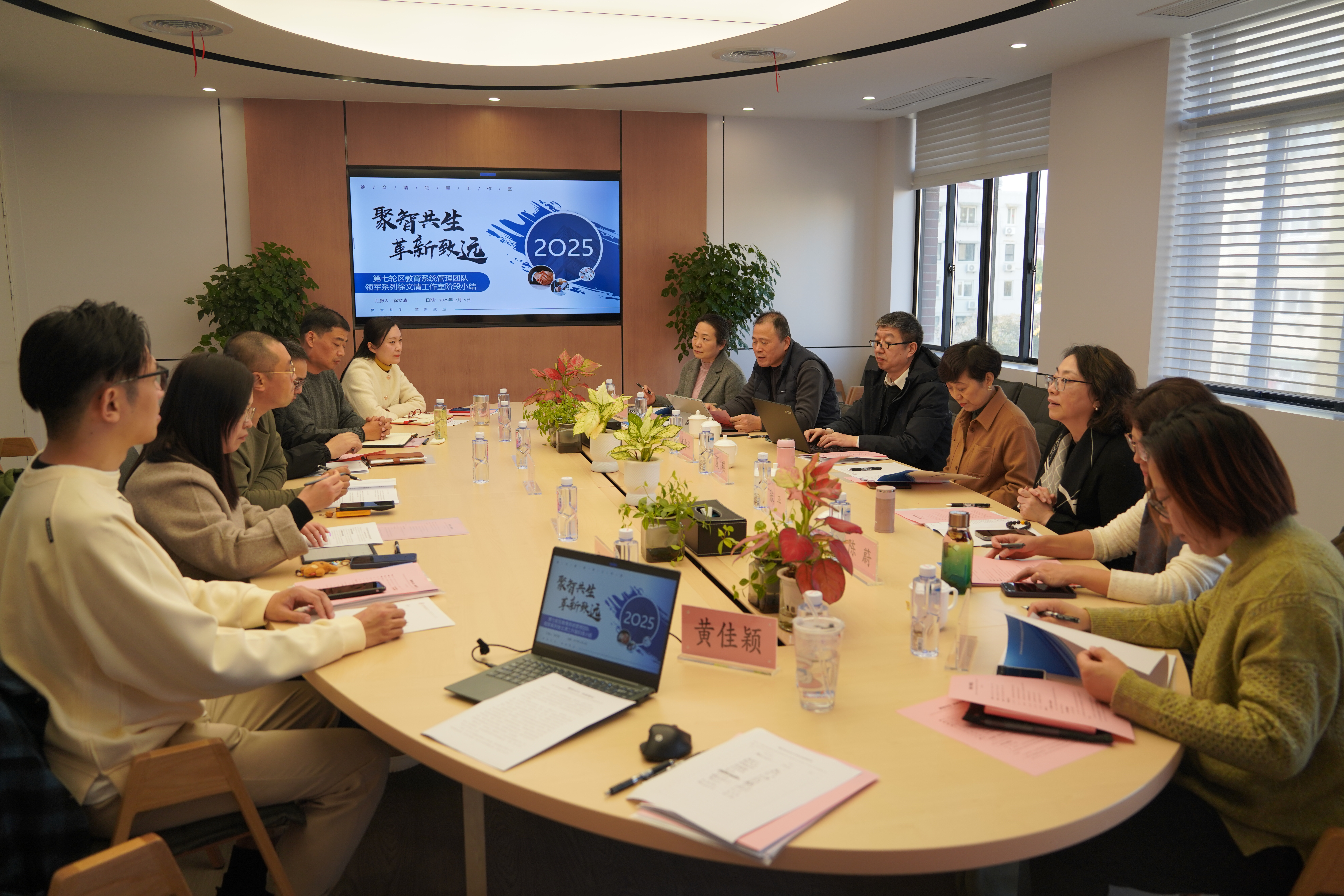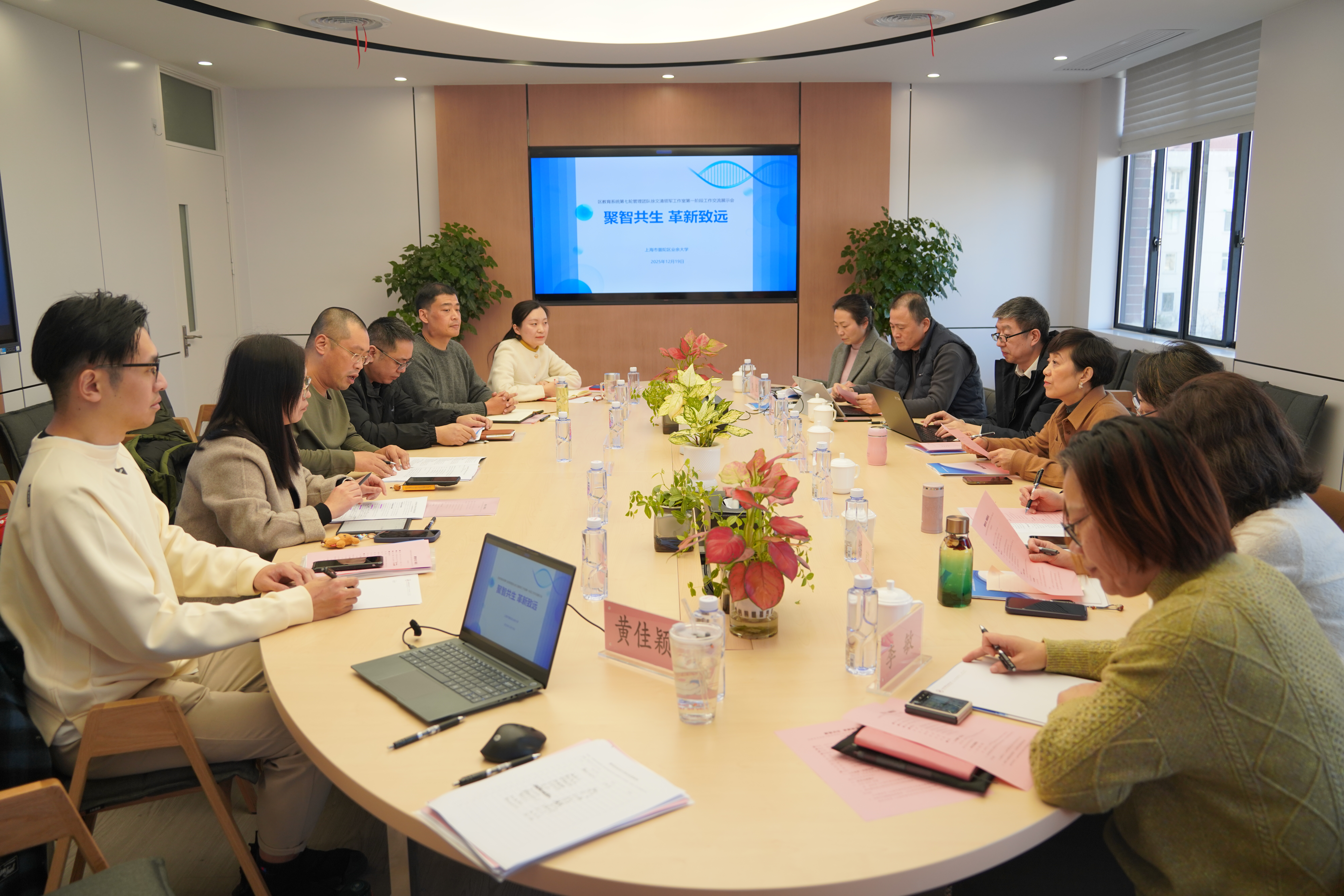 本次交流展示活动不仅是对工作室第一阶段研修成果的集中检阅与深度复盘,更是凝聚专家智慧、明确前行方向的重要契机,为全体学员搭建了互学互鉴、共同提升的平台。未来,徐文清领军工作室将继续以“聚智共生,革新致远”理念为引领,依托专业支持与指导,将协作精神和探索精神落到实处,持续深化研修模式创新,推动学员管理能力与综合素养再提升,为普陀区教育系统干部队伍建设注入强劲动能。