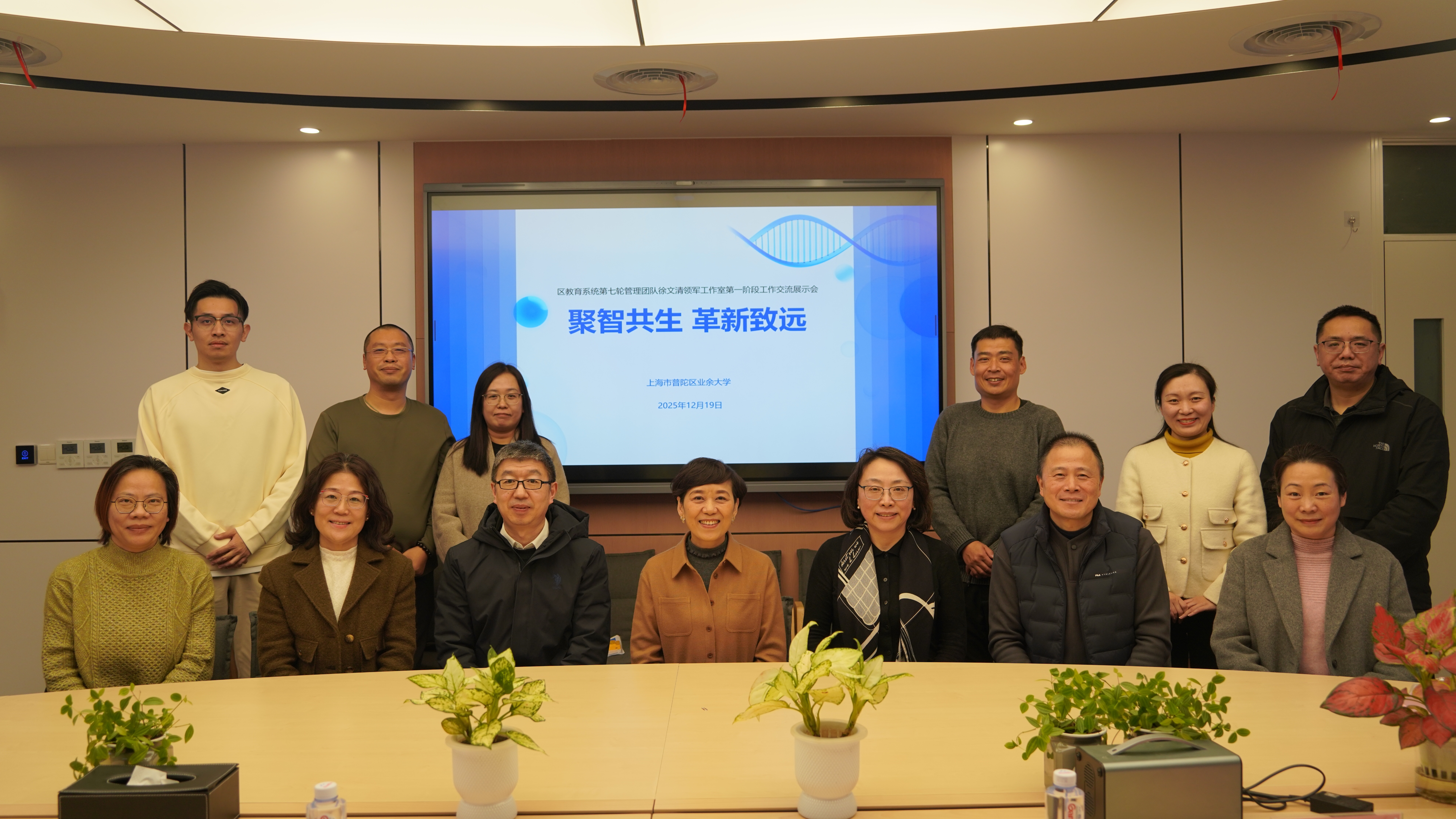 12月19日下午,普陀区教育系统第七轮管理团队徐文清领军工作室第一阶段工作交流展示会在区业余大学举行。上海市老年教育工作领导小组办公室主任夏瑛,普陀区教育学院党总支书记张平,静安区业余大学校长、社区学院长蒋中华,曹杨职校党总支书记陈蔚,曹杨中学党总支书记刘滢,桃浦中学党支部副书记李敏等应邀莅临指导。