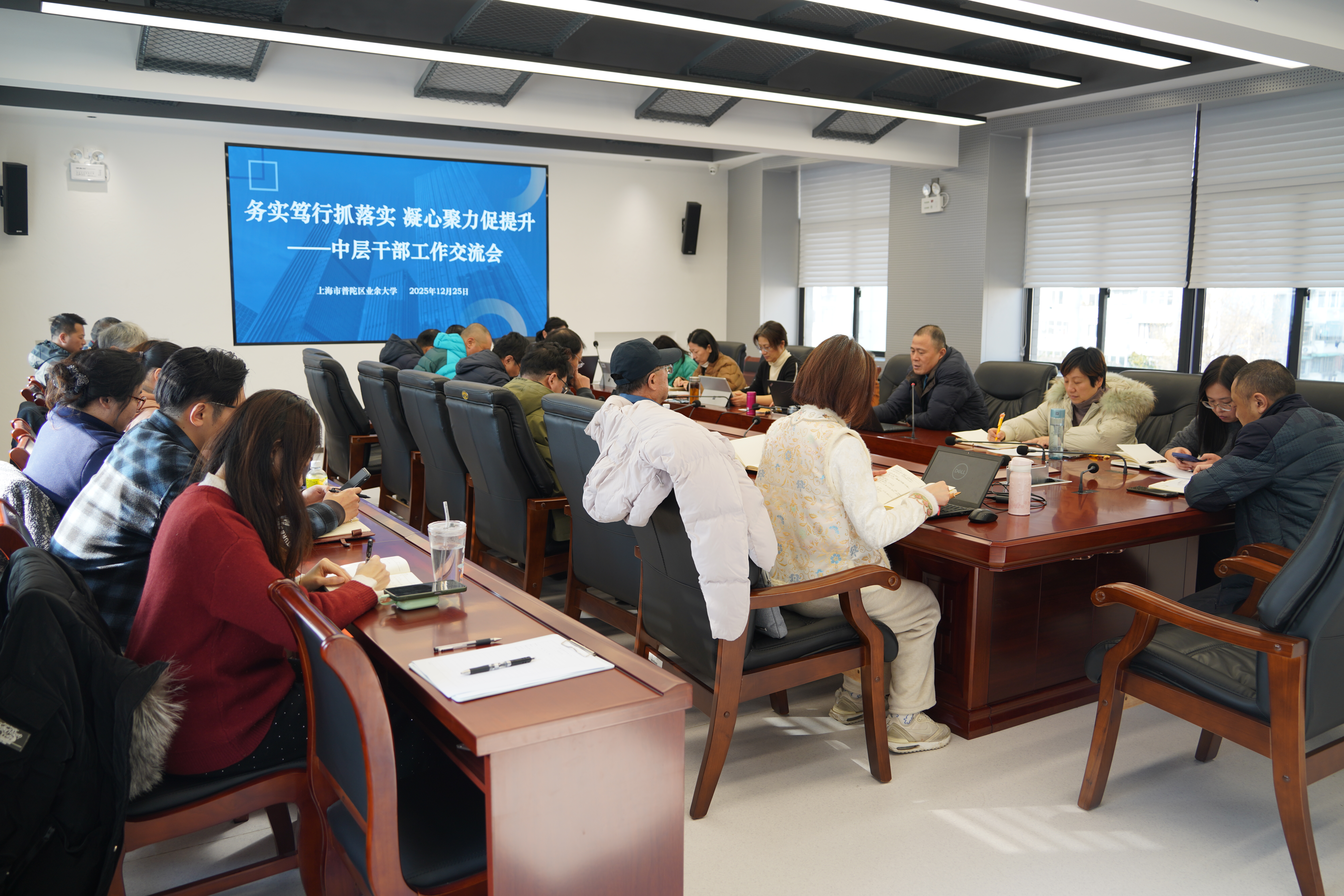 为进一步凝聚共识、激发活力,全面推动学校工作提质增效,12月25日下午,普陀区业余大学召开中层干部工作交流会,围绕阶段工作进行盘点,并就未来发展谋划展开深入交流。学校领导班子成员及全体中层干部参加会议。会议由党总支副书记、校长徐文清主持。