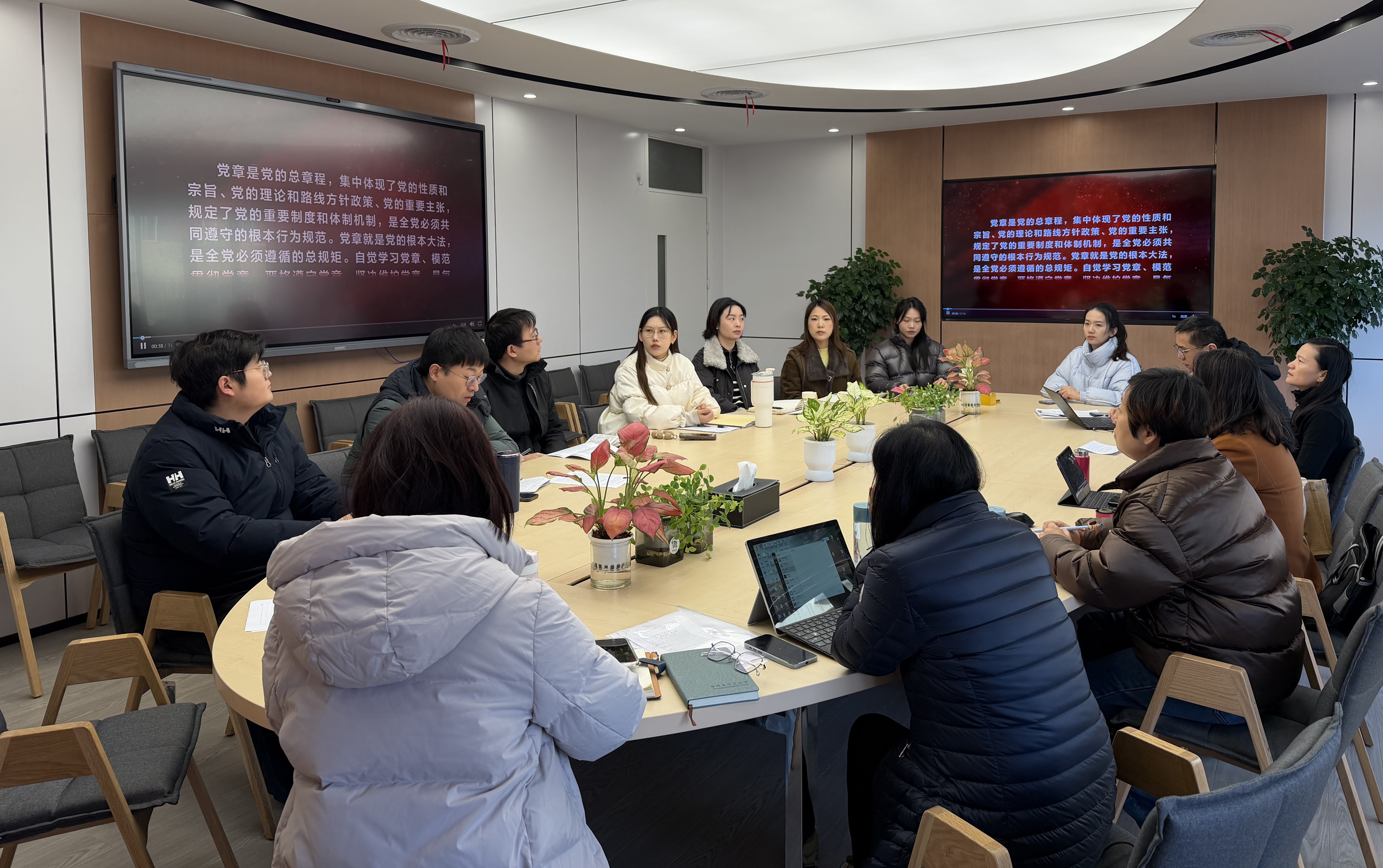 会上,全体人员集中观看学习了2024年中央组织部组织制作的《党章电视辅导教材》。党章作为党的总章程,是全体党员必须共同遵守的根本行为规范,更是入党申请人明确入党标准、锤炼党性修养的核心遵循。通过学习,大家深入领会党章核心要义和实践要求,进一步明晰“为什么入党、入党做什么”。