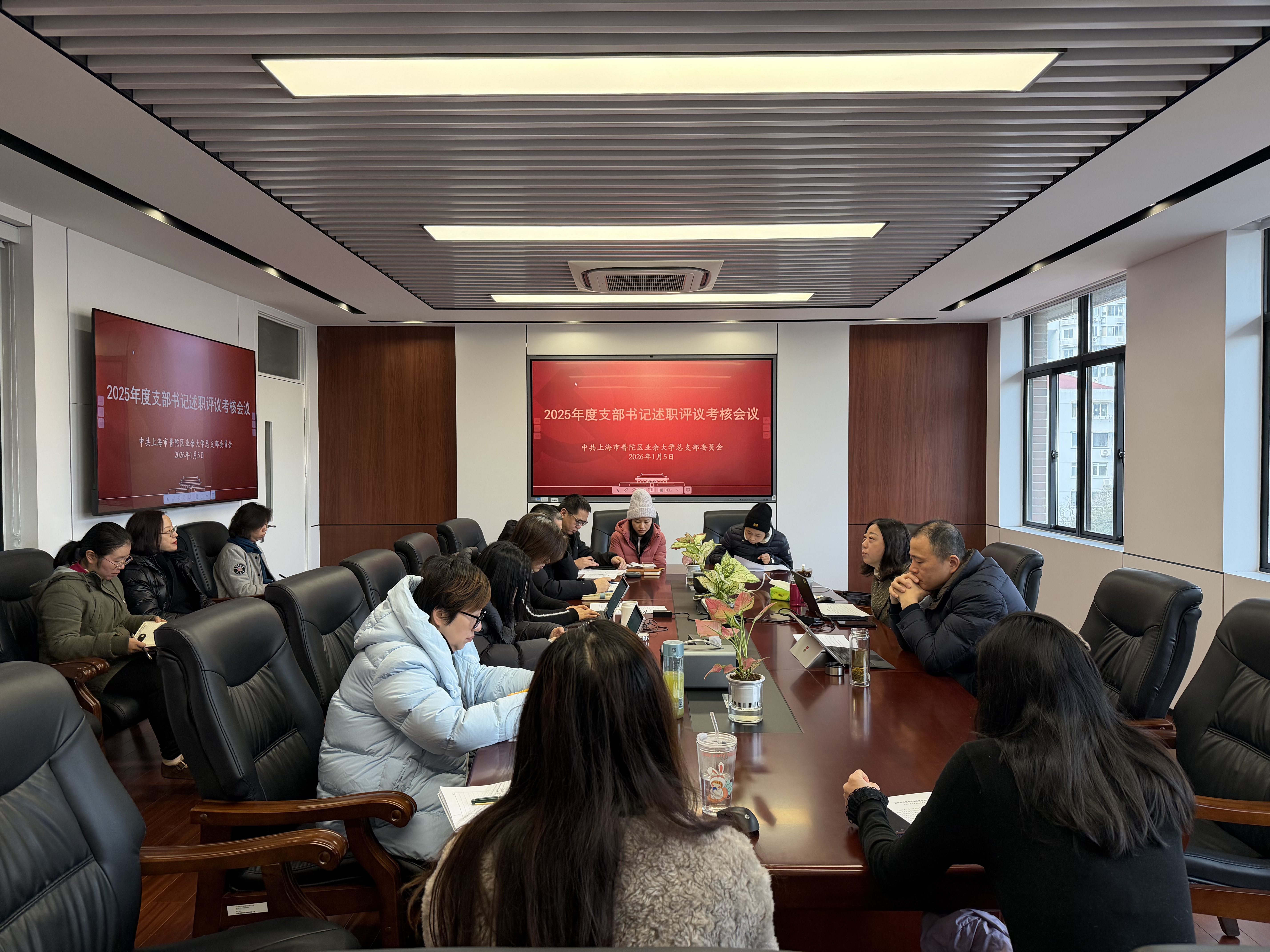 近日,普陀区业余大学党总支在412会议室召开2025年度党支部书记述职评议考核会议。学校党总支委员、领导班子成员、各支部书记及委员参加会议,会议由学校党总支书记张喆主持。