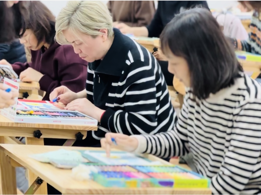 当课堂正式开启,学员们使用油画棒晕染出玉兰与垂柳的春日私语;小提琴班学员奏响悠扬旋律;合唱班用歌声传递对生活的热爱;舞蹈教室里学员们舒展身姿,展现岁月沉淀的从容与活力。