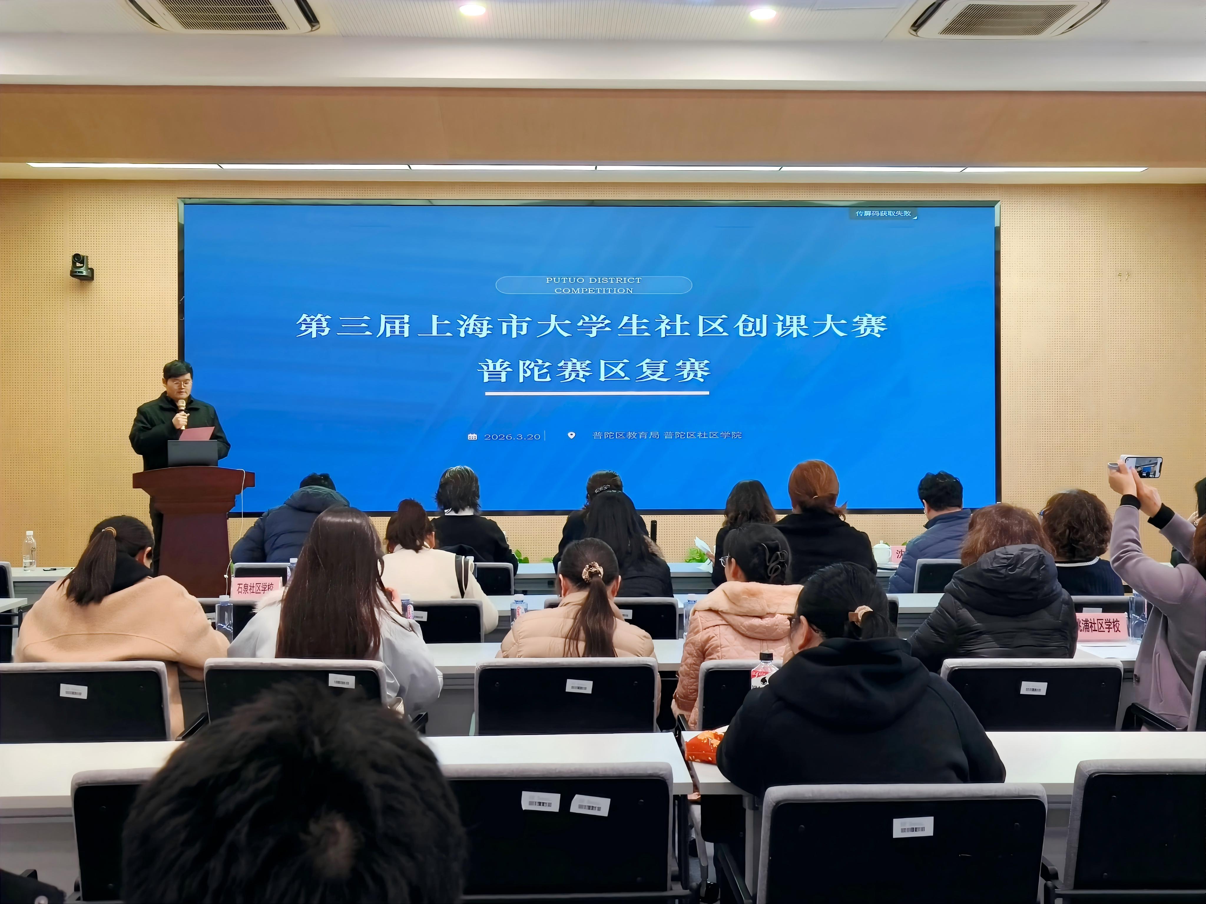 3月20日,第三届上海市大学生社区创课大赛普陀赛区复赛在普陀区业余大学顺利举行。来自全市多所高校的10支大学生创课团队齐聚一堂,围绕数字素养、健康素养、文化素养、生活素养等主题,展开了一场创意与智慧交织的课程展示。本次复赛由专家评委和孵化基地指导教师共同组成评委团,按权重相加得出最终评分。